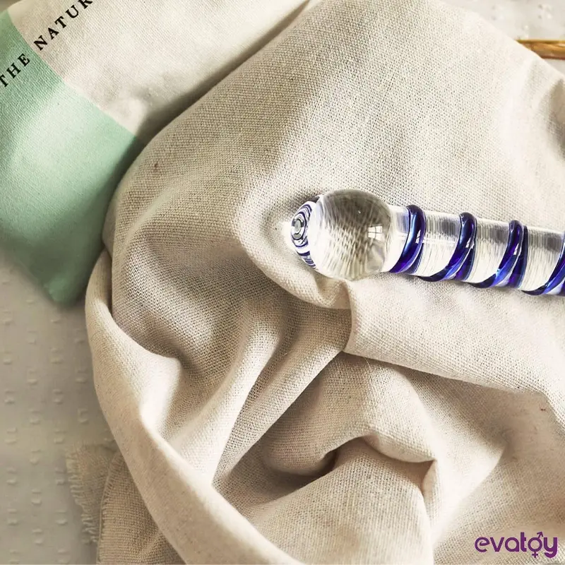 Evatoy Koleksiyonluk Mavi Burgulu Cam Dildo