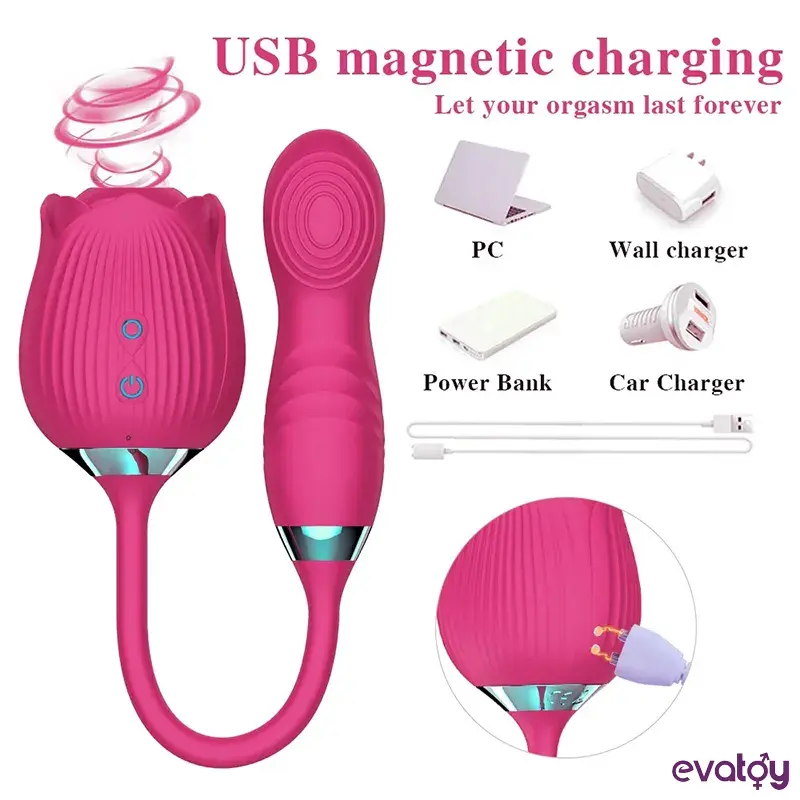 Evatoy Pulsed Rose Emiş, Titreşim ve Darbe Vibratörü, 10 frekanslı titreşimli. emme. çırpma modlu yeni gül vibratörü. güçlü bir motor. her tutkunuzu uyandıracak. Size daha lüks bir zevk getirecek.