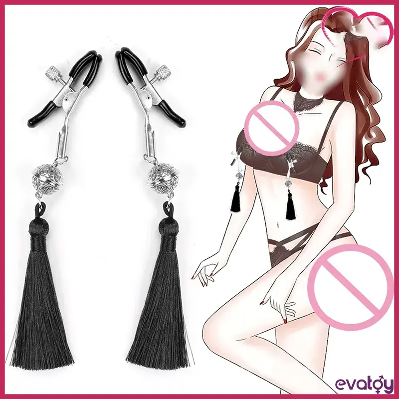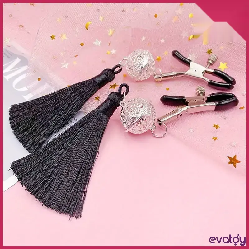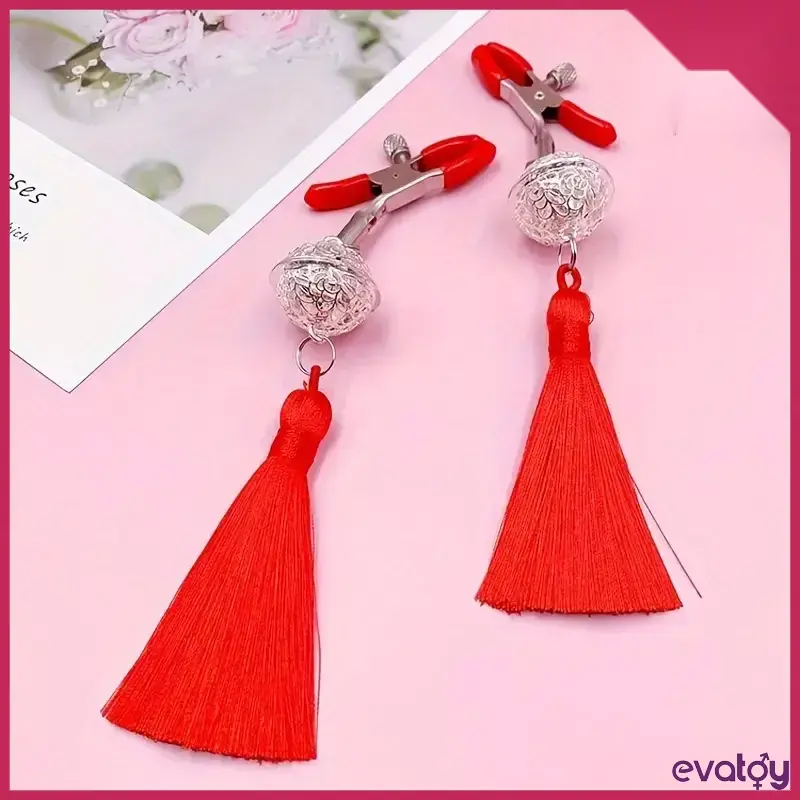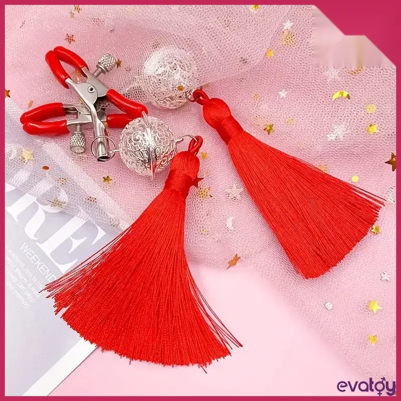 Cımbız tarzı bir tasarımla, bu meme kelepçeleri çan ve püskülle dekore edilmiştir.