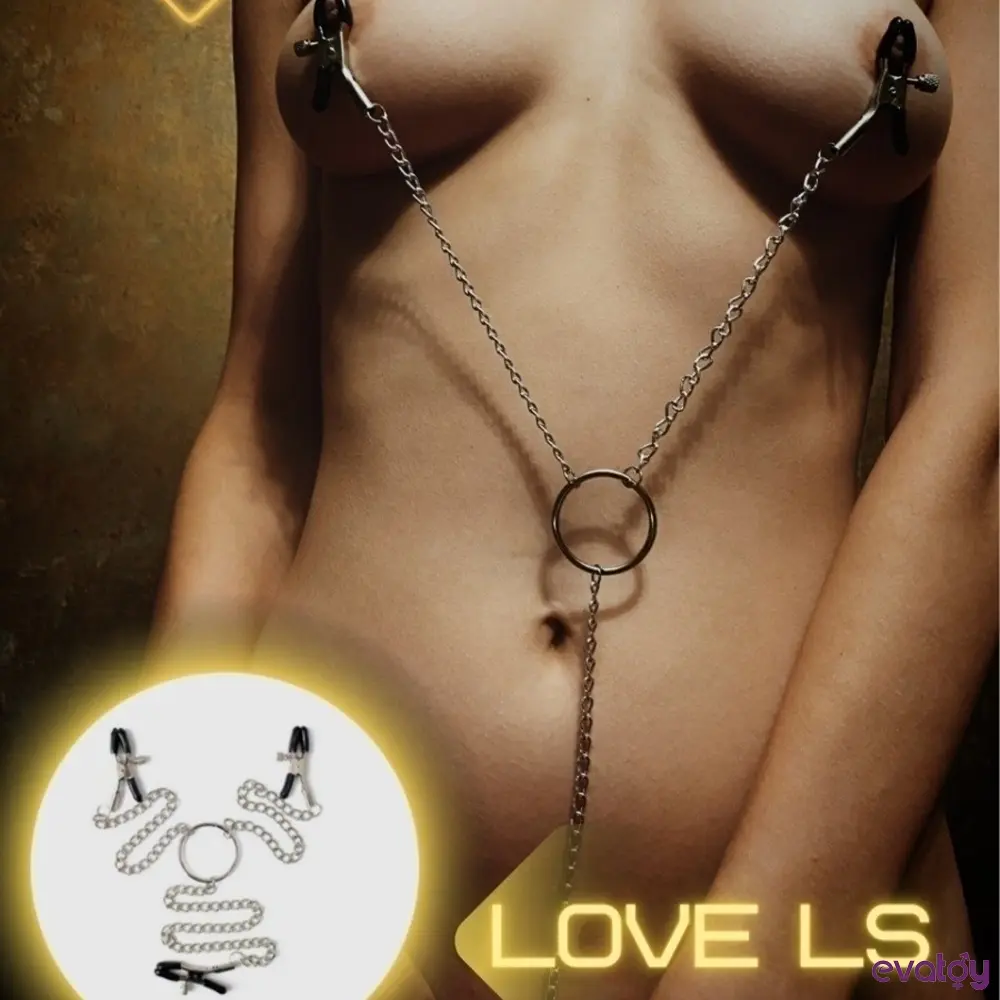 Evatoy Zincirli Meme ve Vajina Kelepçesi