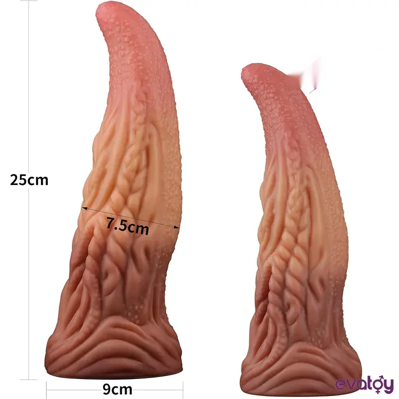 Bu egzotik uzaylı benzeri dil veya dokunaçla, size dünyanın dışında bir zevk tadı getirmeyi vaat ediyor. Ucu sivrilmiştir ve yumuşak, organik bir kıvrımın yanı sıra, dilin gövdesi boyunca geniş bir tabana doğru genişleyen çok sayıda yükseltilmiş nubbin ve şerit içerir. İnanılmaz boyutları sizi havaya uçuracak.