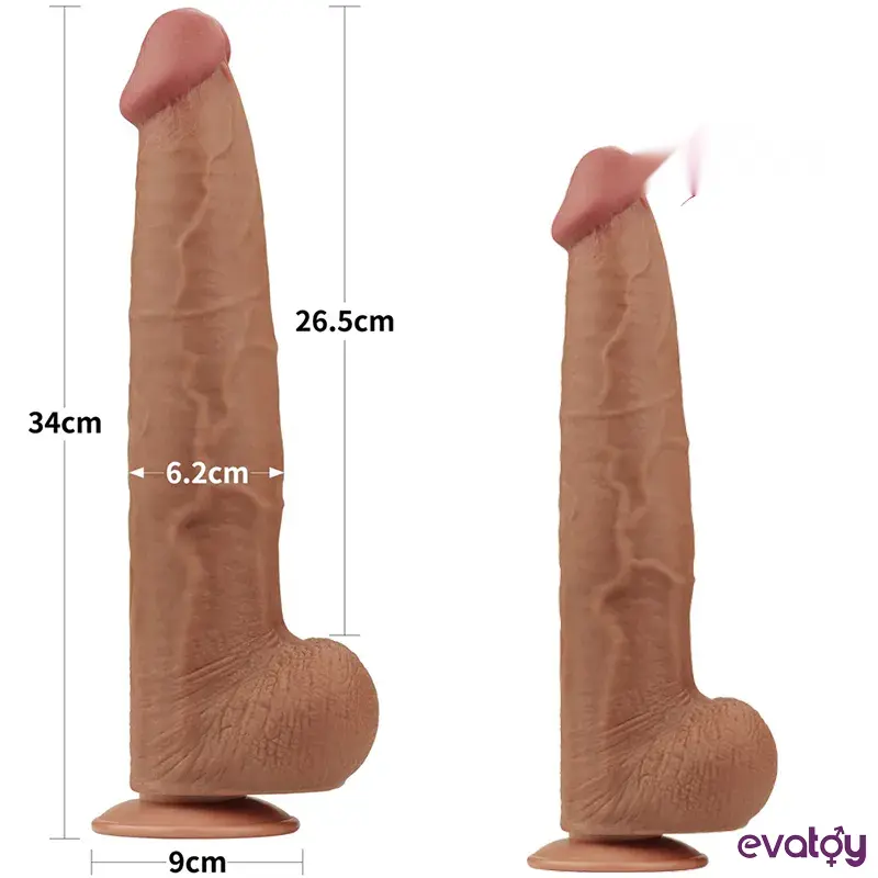 Gerçeğe yakın bir his için gerçekçi çift katmanlı kayar deri malzemeden yapılmış ve ereksiyon halindeki penis hissini simüle etmek için özel çift yoğunluk teknolojisine sahip bu yapay penis, yumuşak bir dış cilde ve tatmin edici derecede sağlam bir iç kısma sahiptir. Orijinallik için el yapımı olan bu gerçekçi üye, herhangi bir şekle, hatta gerçeğinden daha iyi bir şekilde kolayca bükülebilir. Oyununuzu geliştirmek için gerçekçi şafta biraz su bazlı yağ eklemeniz yeterli. Yüksek mukavemetli TPE’den yapılmış patentli vantuzumuz, kullanışlı kullanım için vidalanarak açılıp kapatılabilir. Ayrıca güçlü oyun için güçlü emiş gücü sağlar. Uzunluk: 34 Cm Kalınlık: 6.2 Cm Kullanılabilir uzunluk: 26.5 Cm Ana Özellikler