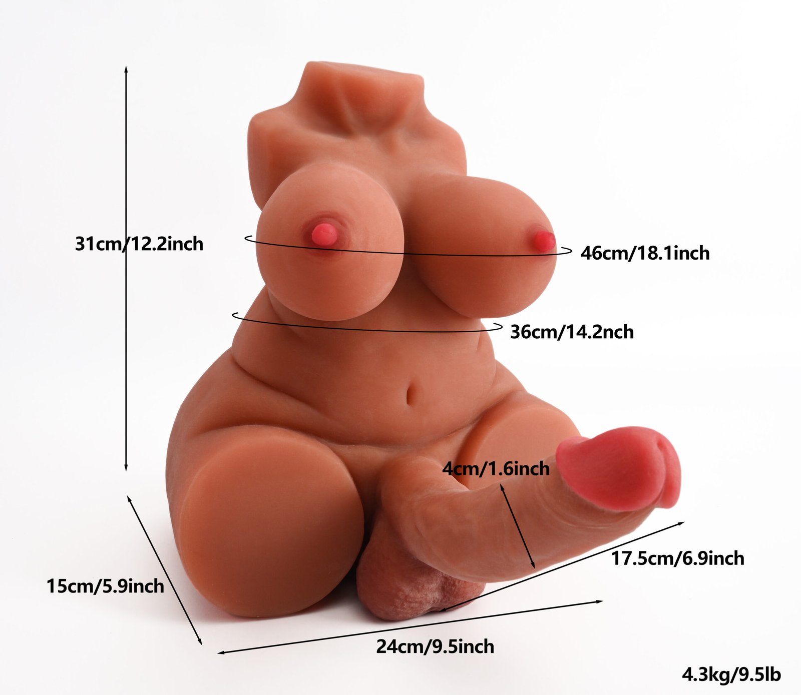 Realistik 4.3 kg Göğüs ve Entegre Dildo Kombinasyonlu Premium Mastürbatör