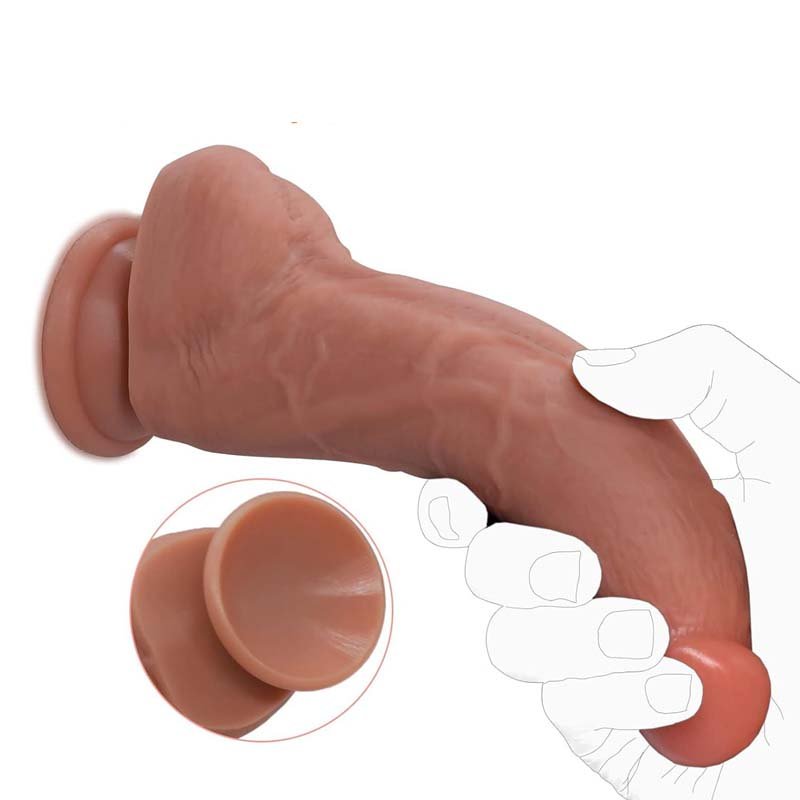 Ultra Yumuşak Medikal Silikon Gerçekçi Dildo – 18 cm Kavisli Gövde ve Damarlı Yapı, Güçlü Vantuzlu Eller Serbest Kullanım